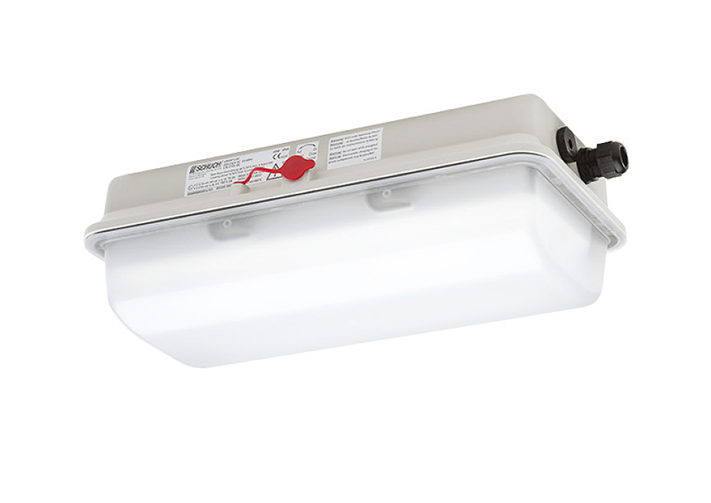 Sehr robuste Sicher­heits­leuchte nach DIN EN 60598-1/2-22 und DIN EN 1838.